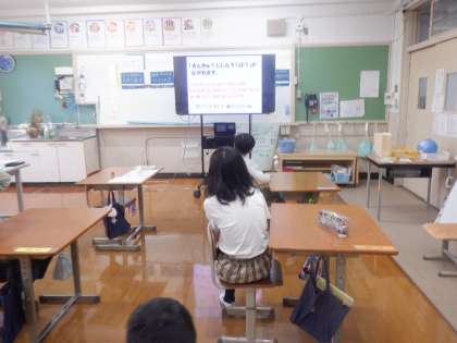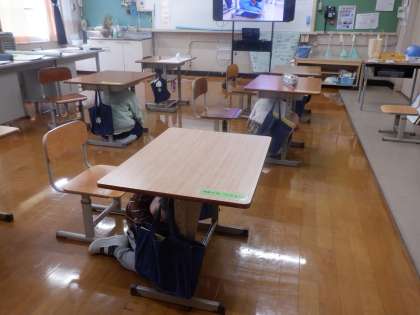 地震が起こった時に、どのような行動をとる必要があるのか確認しました。まずは一時避難です。だんごむしのように姿勢を低くして、頭を守ります。教室でもやってみました。上手にできました。木曜日の避難訓練に備えます。
