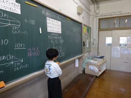 2年生で学習した「テープ図」をレベルアップさせて、「線分図」の学習をしました。