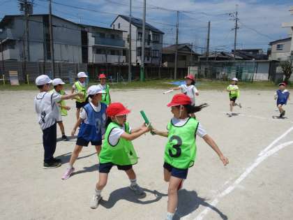 タイムや順位を上げるには バトンパスがかぎだ!と気づいたチームが、バトンの渡し方ともらい方を工夫していました。