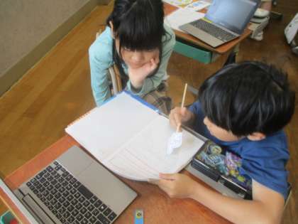 今日は、72÷3を10の束やバラを使って考え、考えたことをペアで話し合う学習を行いましたが、自分の考えを友達と積極的に交流する中で、考えを深めていくことができていました。