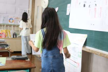 今日の外国語の時間に、子どもたちがアルファベット探しをしていました。色んなところからアルファベットを見つけていく子どもたち、すごいです。えのきは「Y」、ぞうきんをかけるところを横から見ると「A」、机の足は「H」、机の荷物フックは「J」など、面白い発見ばかりでした。子どもの視点って面白いですね。