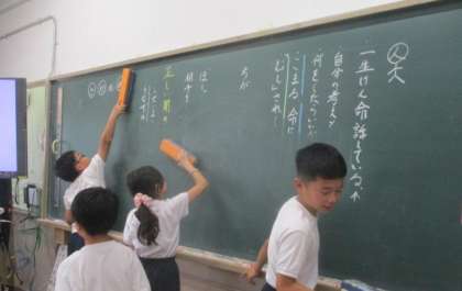 今日のハートフルタイムの学習後、数名の子どもたちが黒板消しを取り合うかのように「先生、黒板消します。」と進んで板書を消してくれました。自分から進んで、誰かのために何かができるって素敵ですね。