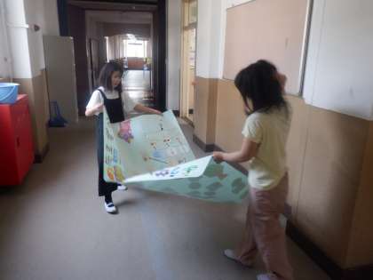 養正の先生たちと仲よくなるために、インタビューをし、その内容をもとに「先生ずかん」を作りました。構内図を用いて、マップ上に表しました。それぞれの好きなイラストもかいて、自信満々の「先生ずかん」が仕上がりました。
