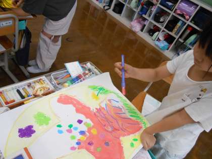 図画工作科「ふしぎなたまご」では、自分オリジナルのたまごを描きました。耳がついているたまごや、家が描いてあるたまご、カラフルなたまごなど、様々なたまごが完成しました。このたまごから、どんなお話や世界が生まれてくるのでしょう。楽しみです。