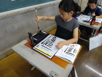 初めての毛筆とは思えないくらい、きれいな教室でした。