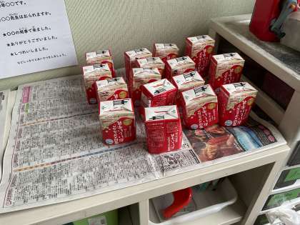 給食の牛乳パックを乾かしておき,そのなかに1〜2つずつ入れて持ち返っています。
