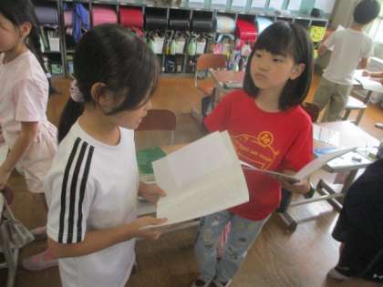 相手に伝える時の内容や、話す順序を確かめてから友達と伝え合う活動を行いましたが、「私は、○○先生のところに、□□についてのお話を聞きに行ってきました。○○先生は、…」と、すごく丁寧に、また聞き取ってきたことを具体的に友達に伝えることができていました。今後も、大事な事を聞き逃さないように、様々な場面でメモを活用していってほしいです。