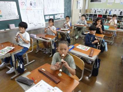 「シ」「ラ」「ソ」の指づかいを覚えて、きれいな音が鳴るように練習しています。