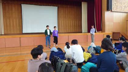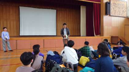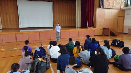 本日より、5年生は花背山の家に宿泊学習に出発します。昨日までの雨もあがり、晴れやかな天気のもと、出発式を行いました。