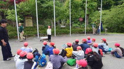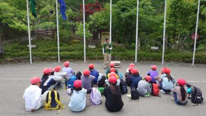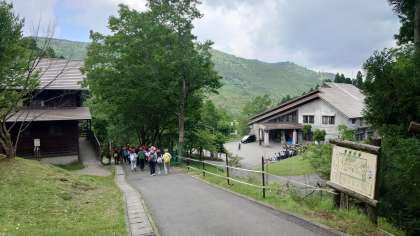 山を下ること1時間と少し。鳥やカエルの鳴き声に耳を傾けながら、元気に入所ハイクを終え、花背山の家に到着しました。