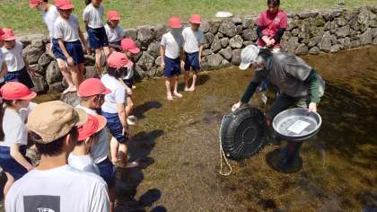 <5年生花背山の家>魚つかみ