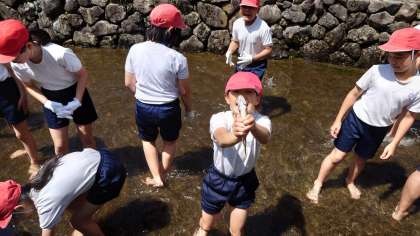 1日目、午後の活動は「魚つかみ」です。