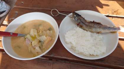 みんなで協力したおかげで美味しい焼き魚、豚汁定食の出来上がりです。