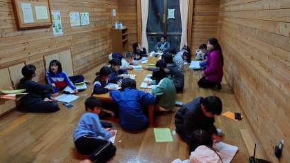 入浴で1日の疲れを癒し、最後のプログラムは振り返りの会です。それぞれの係の仕事、班の中での協力、一番心に残ったことなどを交流し、明日の活動につなげます。