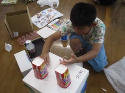 図工の学習で箱を使って、様々なものを作りました。