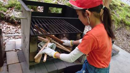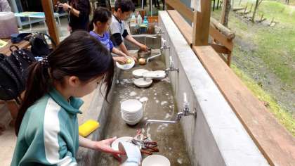 最終日の昼食は自分たちでカレーライスを作ります。野外炊事は2回目なので、調理班もかまど班も、準備がすごくスムーズです。