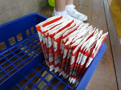 昨日、今日と、給食の牛乳パックが、きれいに折って整頓されていました。