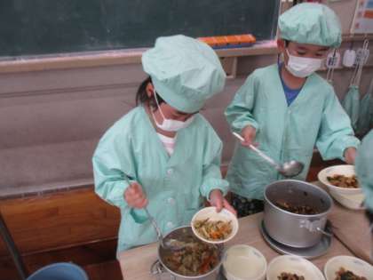 最初は、教師が入れるのや配膳を手伝っていましたが、もうすっかり自分たちでできるようになってきています。すごいです!!