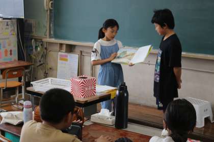 今週は読書週間です。早速朝から読み聞かせに来てくれました。休み明けの朝からこうして活動してくれること、すごいと思います。委員会で頑張っている姿というのは、いろんな人に刺激を与えますね。本の世界も、もちろん自分で読めてほしいですが、読み聞かせをしてもらう方が頭に残るという子もいます。だからこそとても大事な取組ですね。