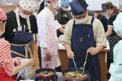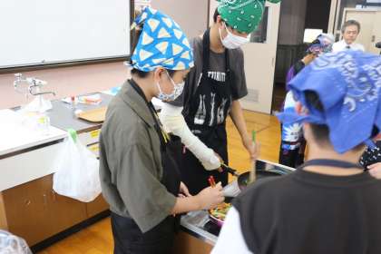 さて今日は調理実習をしました。「いろどりいため」野菜がたくさんです。大事ですね。子どもたちは、材料の切り方などを確認した上で、安全に気をつけて調理をしていました。すごいなと感じたところは、調理と後片付けを同時進行でやっていたことです。野外炊事やこれまでの実習、そして何よりお家での経験も生きているのでしょう。さすがです。