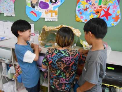 生活科では、生き物を育てます。1年生の頃に育てていた「もこちゃん」のお世話をしたいという話が出てきたので、2年生教室で日中は預かることになりました。子どもたちは、とても嬉しそうにさっそくお世話を始めました。