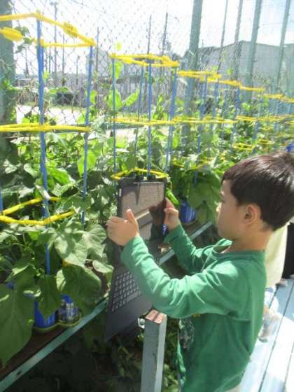今日はiPadを使って、生活科で育てているあさがおを写し、ロイロノートで提出しました。