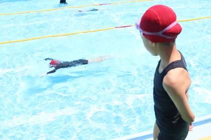 今日の水泳学習のワンシーンです。どうでしょうこの安心感のあるバディスタイル。見守ってくれている子どもたち、とても頼もしいです。安全面での配慮はもちろん、そこだけではありません。技術的な指導もバッチリです。