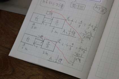 分数÷分数の学習がいよいよもうすぐ終わりとなります。今回は、割合に関する問題でした。もちろん分数でも割合は表すことができます。子どもたちは、昨年学んだことを生かしながら、意欲的に解決していました。ちなみに割合というと子どもたちから必ず出てくるのが「精霊界からゴブリン」「小数点から割分厘」です。