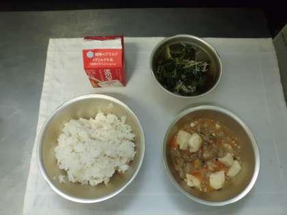 今日の給食は,麦ごはん・牛乳・五目どうふ・ほうれん草ともやしのいためナムルでした。五目どうふは,しょうがの味がよくきいて暑い時はとくに食欲がでておいしかったです。ほうれん草ともやしのいためナムルも米酢の味でさっぱりとして,野菜をたくさん食べることができました。