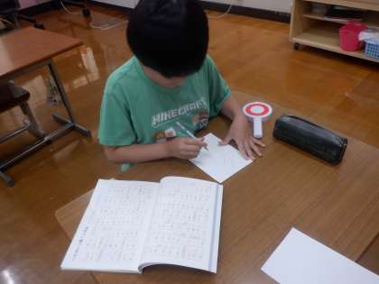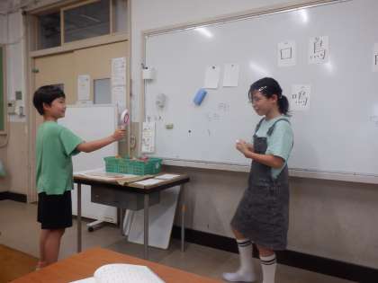 漢字のクイズを考えました。クイズを作るために、今まで習った漢字をじっくり見ていました。クイズを出すことで、覚えることにもつながると思います!