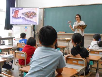 7月のにこにこ学習は、「となりの国(韓国・朝鮮)について」です。今日はコリア民族教室の先生の授業でした。トラの鳴き声は「ガオー」とみんなは言っていますが、実は韓国・朝鮮では「オフン」と知りました。子どもたちは驚き、「もっと知りたい!」「犬は?」と興味津々でした。
