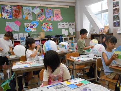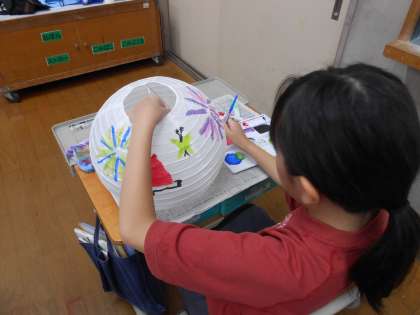 図画工作科では、ランタンに絵を描きました。テーマは「夏にしたいこと」です。子どもたちは、「かき氷食べたい〜」「海に行くよ!」「夏といえばスイカでしょ!」と、とても楽しそうに絵や模様を描いていました。ランタンは阪急洛北スクエアに展示予定です。楽しみですね。