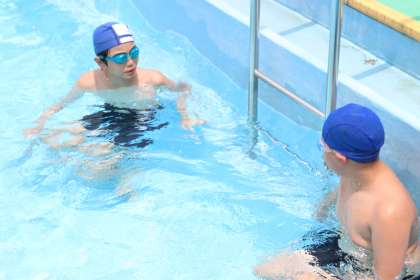 水中からチェックしてアドバイスをしたり、一度お手本を見せてみたりと、自分のできることを生かしてアドバイスをしている姿、とても頼もしいです。