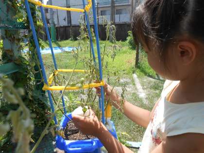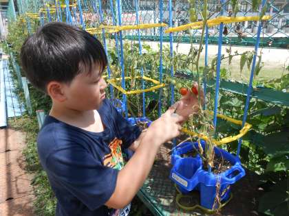 朝から子どもたちは大騒ぎ!ついに、生活科で育てているミニトマトが、赤くなりました!収穫できたのは、まだ数人ですが、オレンジ色になっていたり、緑の実がたくさんついていたりします。お世話を引き続き頑張っていきましょう!