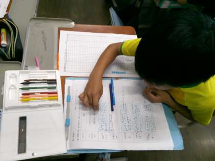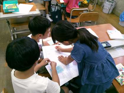 「算数でやってるしグラフにしよう!」と言ってくれた人がいたので、班ごとにシールをつかってグラフに表しました。