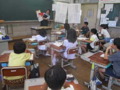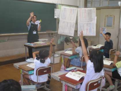 今日は、その『POP』についてや、本の表紙に付けられている『帯』について左京図書館から司書の方にお越しいただき、とても丁寧に教えていただきました。また、最後には、「しろくまのパンツ」というPOPが工夫されている絵本の読み聞かせもしていただき、子どもたちはとても楽しそうに本の世界に入り込むことができていました。