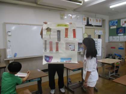 今日は自由研究の発表をしました。ポストの歴史やコンビーフコロッケの作り方,細胞について知ることができました。全員の自由研究に興味を持って発表が聞けました。