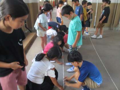 教室からトイレまで、みなさんの予想は40mくらいでした。教室の長さから予想を立てていたのが良いなと思いました。