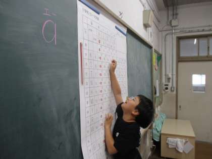 表を見てきまりを見つけたり、実際に書いてみたり、しりとりをしてみたり・・・