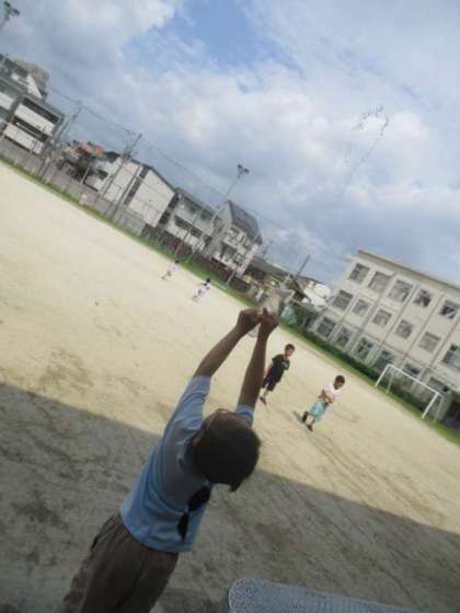 水あそびをしました。今回はマヨネーズやケチャップの容器で水がどこまで飛ばせるか試したり、砂地に絵を描いたり、水遊びに使うまとを作ったりしました。試行しながら遊びを広げる子どもたち。さすがです!!