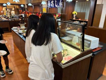 <修学旅行>夕食はホテルのバイキング