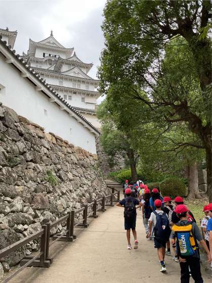 バスの中から大きな白いお城が見えると大きな歓声が上がっていました。みんなで天守閣目指して、頑張って登りましょう。
