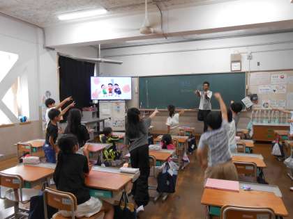 2年生初めての英語の学習をしました。2学期からはジュン先生と一緒に学習をしていきます。今回は初めてだったので、自己紹介をしてもらいました。子どもたちは途中に出てくるクイズや、じゃんけん大会、そしてジュン先生のジェスチャーを楽しんでいました。来週からの授業も楽しみですね。
