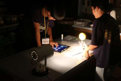 ということで、地球からの見え方を実験してみることにしてみました。暗闇になっただけでテンションが上がる子どもたちですが、とても冷静に実験を行い、月の見え方の変化について調べていくことができました。同じ班の子ども同士でサポートし合いながら実験しているのも素敵です。