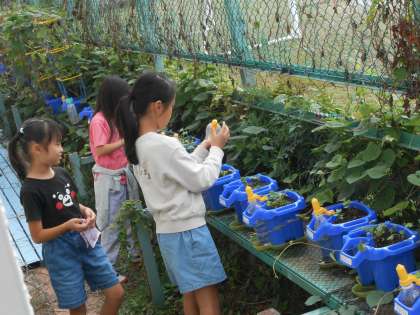 生活科「やさいを そだてよう」では、はつか大根を育てています。子どもたちは「もう芽が出てきた」「かわいい」「あさがおの芽とはまた違うね」と話しながら水やりをしていました。二十日で育つ!?と子どもたちはウキウキワクワクしています。