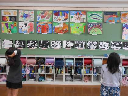 今日は図工の作品の鑑賞をしました。子どもたちは友だちの作品のいいところをたくさん見つけ、カードに書いていました。「草に見えるように細い筆でサッサと描いているな」「色を変えているんだね」とじっくり観るからこそ気づくことがありましたね。