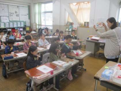 今日は、養護教諭による歯みがき指導がありました。「歯は一生の友達」ということで、子どもたちの歯の成長についてや歯みがきを怠るとどのようなことが起こるのかということについてのお話をしていただきました。