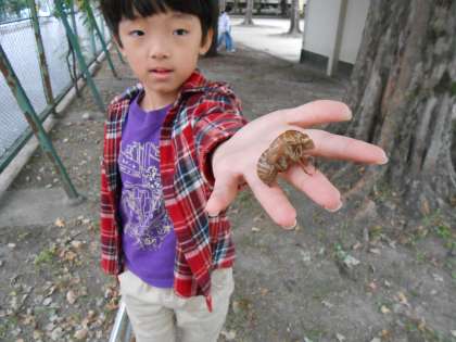 毎週木曜日の朝は、学校の前の飛鳥井公園にてゴミ拾いをします。秋の涼しい風が吹く中、「セミの抜け殻を見つけたよ!」と元気よく見せに来てくれた子がいました。