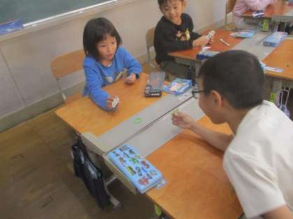 ペアで大きさを比べたり、カード探しをしたり、遊びを通して学習を深めています。