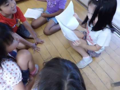 2年生と一緒に「ことばランド」をしました。一緒に詩を群読したあとは,2年生からの「たんぽぽクイズ」に答えました。
